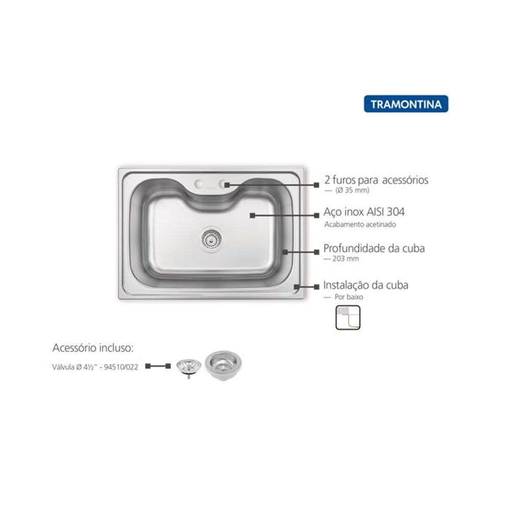 Cuba de embutir Isis 2C 34 BL em Aço Inox Acetinado 77x45 cm - 94030/102 - Tramontina